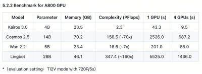 On the A800 GPU benchmark, Kairos 3.0-4B’s inference speed surpasses NVIDIA Cosmos 2.5 by 72 times, setting a new global performance record for embodied world models. This performance is delivered with a lightweight footprint of just 4B parameters and 23.5GB of VRAM — a fraction of Cosmos 2.5’s 70.2GB requirement — demonstrating that efficiency and capability need not be in tension and fundamentally challenging the assumption that larger parameters are a prerequisite for superior performance. The model has also achieved top rankings across three authoritative global benchmarks: PAI-Bench-robot, co-developed by Georgia Tech and CMU; WorldModelBench-robot TI2V, introduced at CVPR 2025; and NVIDIA GEAR Lab’s DreamGen Bench, outperforming all evaluated models on physical consistency and instruction-following metrics.