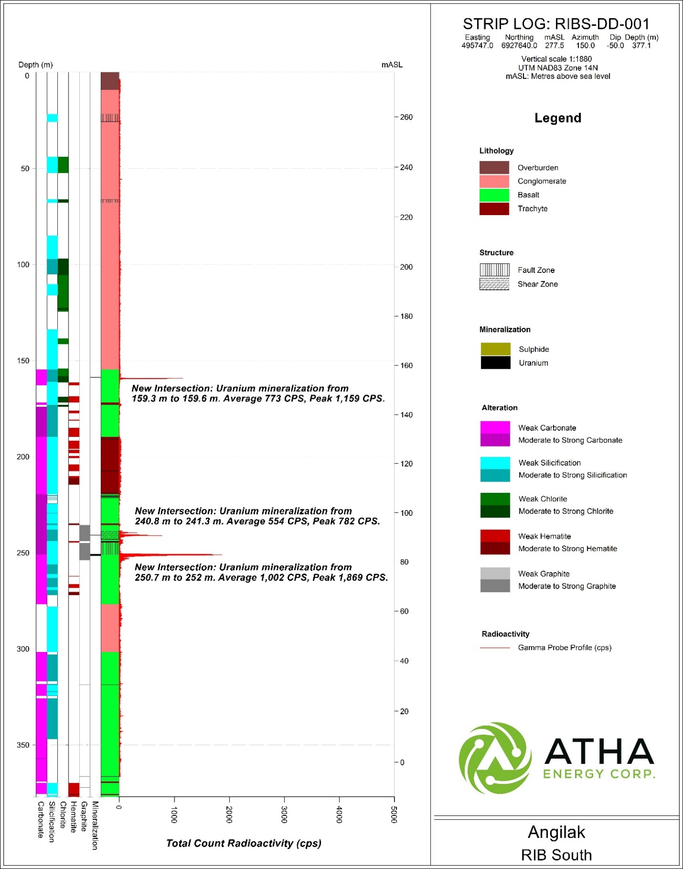Troy Boisjoli, CEO commented: “The newest drillhole results from the RIB North Discovery, situated along the Mineralized RIB Corridor (MRC), represent a distinct achievement, not only for the 2025 Angilak Exploration Program, but for the Company as a whole. They demonstrate that the Angilak Uranium Project has the potential to host thick, high-grade, basement hosted uranium mineralization on scale similar to what is found in the Athabasca Basin. From my previous experience working in both exploration and production across the Athabasca Basin, I am keenly aware of the geological characteristics of basement hosted style uranium deposits. ATHA’s first hole at the RIB North Discovery, RIBN-DD-001, displays similar grades and thicknesses as other discovery holes from major basement deposits. When coupling the results from RIB North with the cumulative discoveries made across the 12 km long MRC, the evidence is stacking up that the MRC has the potential to host discoveries like those found along the Patterson Lake Corridor. Angilak has the makings of Canada’s newest uranium jurisdiction, and this comes on the heels of the recent announcement by the US government for the need to increase their strategic reserves beyond the current 14-month stockpile – the US’ current annual demand is ~50 million lbs U3O8. The Company couldn’t be more excited about the trajectory of success at our Angilak Uranium Project and the entire uranium sector as whole.”