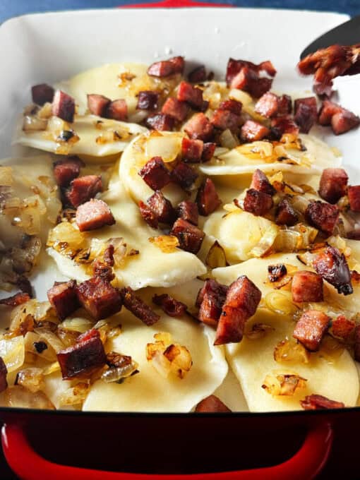 The post Pierogi Casserole with Bacon and Kielbasa first appeared on Eating European.